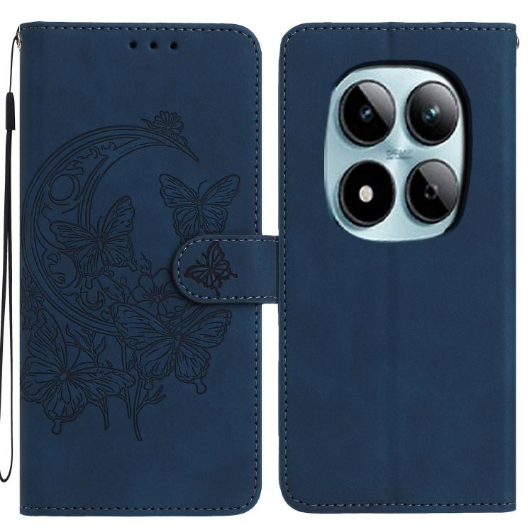 For Redmi Note 15 Pro 5G Global 163.6 Moonlit Butterfly Dance Pattern Embossed Leather Phone Case(Navy Blue)