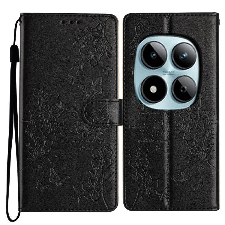 For Redmi Note 15 Pro 5G Global 163.6mm Butterflies and Flowers Leather Phone Case(Black)