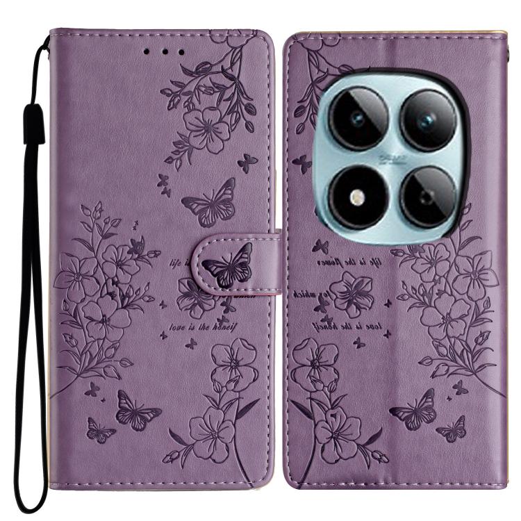 For Redmi Note 15 Pro 5G Global 163.6mm Butterflies and Flowers Leather Phone Case(Purple)