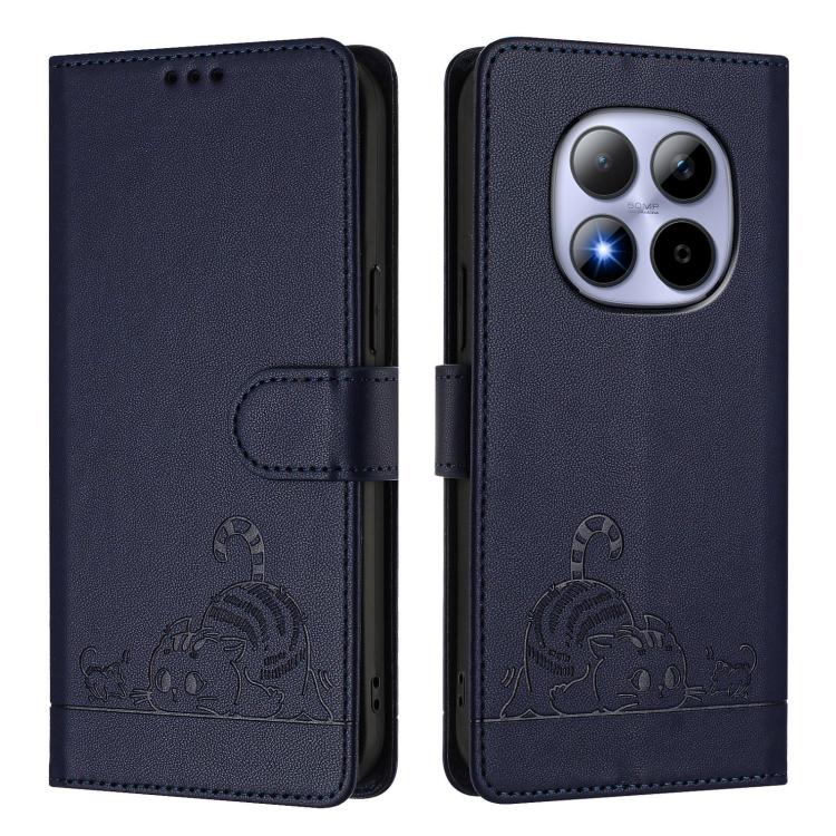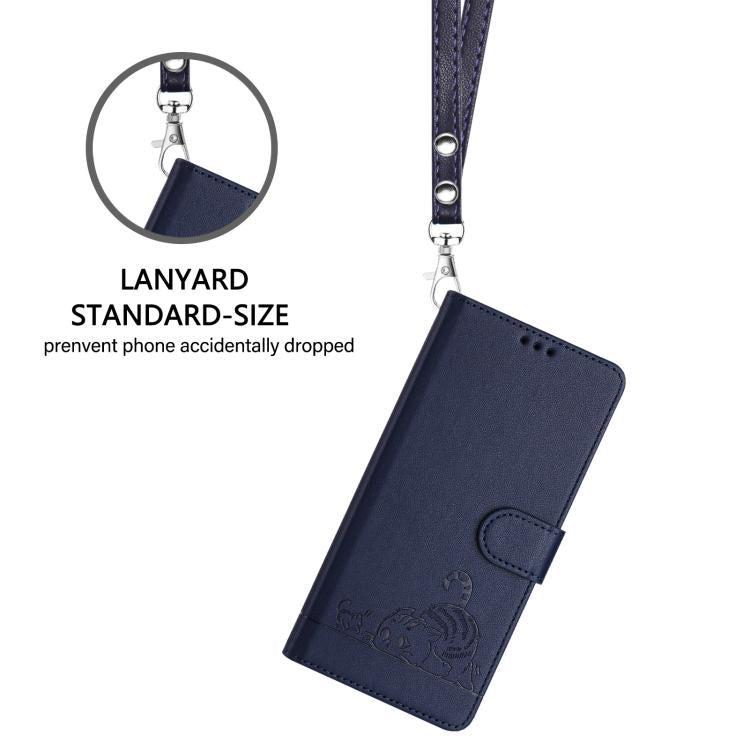 For Redmi Note 15 Pro 5G Global 163.6mm Cat Rat Embossed Pattern RFID Leather Phone Case with Lanyard(Blue)