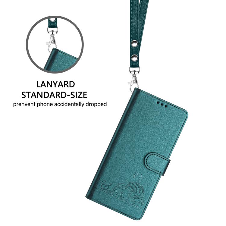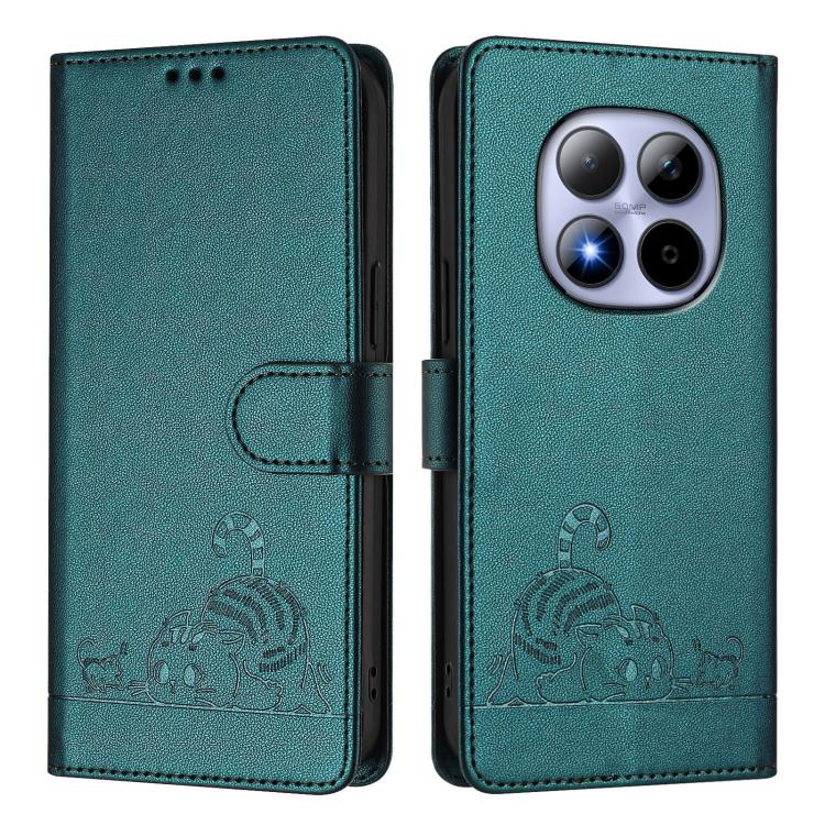 For Redmi Note 15 Pro 5G Global 163.6mm Cat Rat Embossed Pattern RFID Leather Phone Case with Lanyard(Peacock Green)