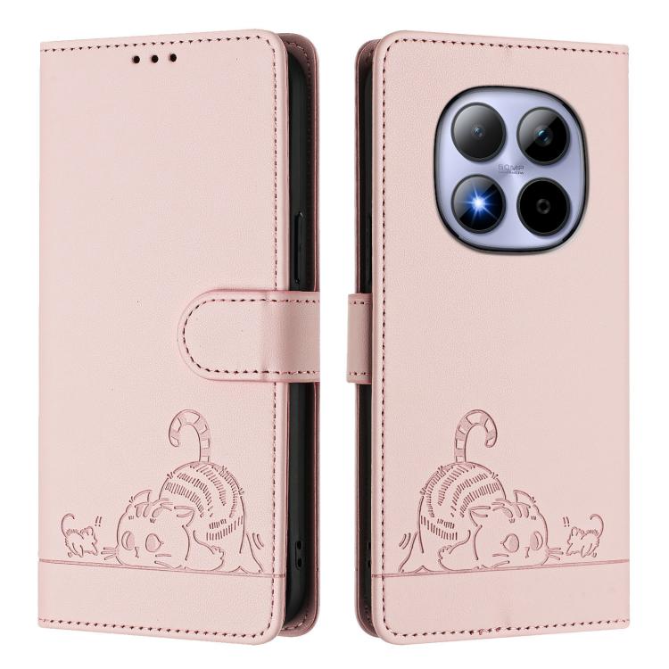 For Redmi Note 15 Pro 5G Global 163.6mm Cat Rat Embossed Pattern RFID Leather Phone Case with Lanyard(Pink)