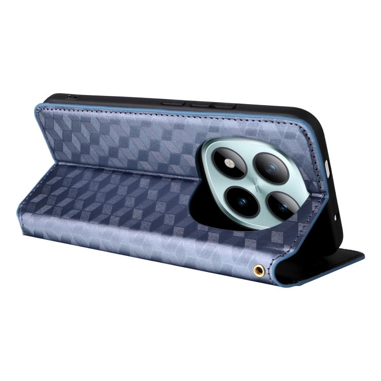 For Redmi Note 15 Pro 5G Global 163.6mm Cubic Grid Texture Flip Leather Phone Case(Blue)