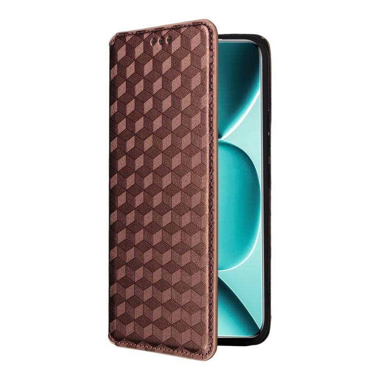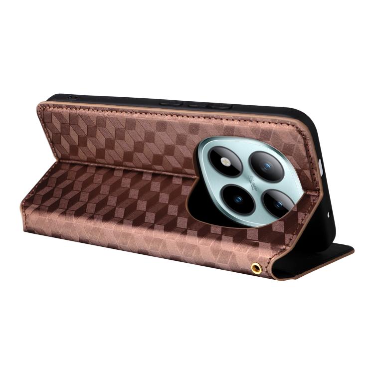 For Redmi Note 15 Pro 5G Global 163.6mm Cubic Grid Texture Flip Leather Phone Case(Brown)
