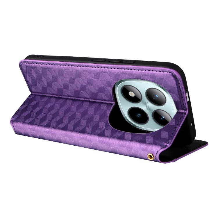 For Redmi Note 15 Pro 5G Global 163.6mm Cubic Grid Texture Flip Leather Phone Case(Purple)