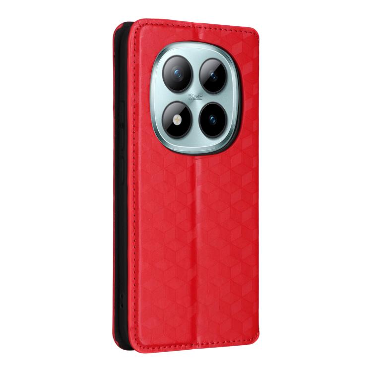 For Redmi Note 15 Pro 5G Global 163.6mm Cubic Grid Texture Flip Leather Phone Case(Red)