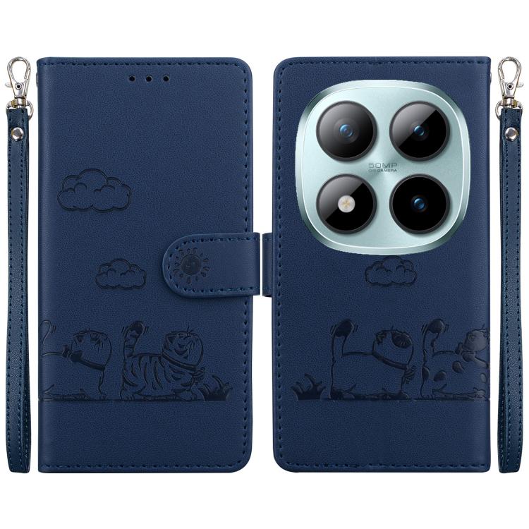For Redmi Note 15 Pro 5G Global 163.6mm Cute Cats RFID Leather Phone Case(Blue)
