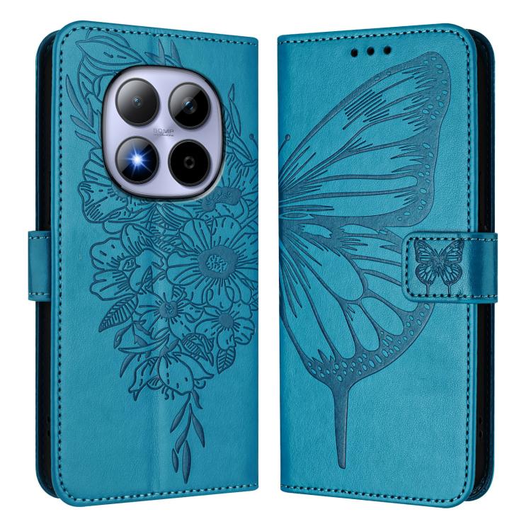 For Redmi Note 15 Pro 5G Global 163.6mm Embossed Butterfly Leather Phone Case(Blue)