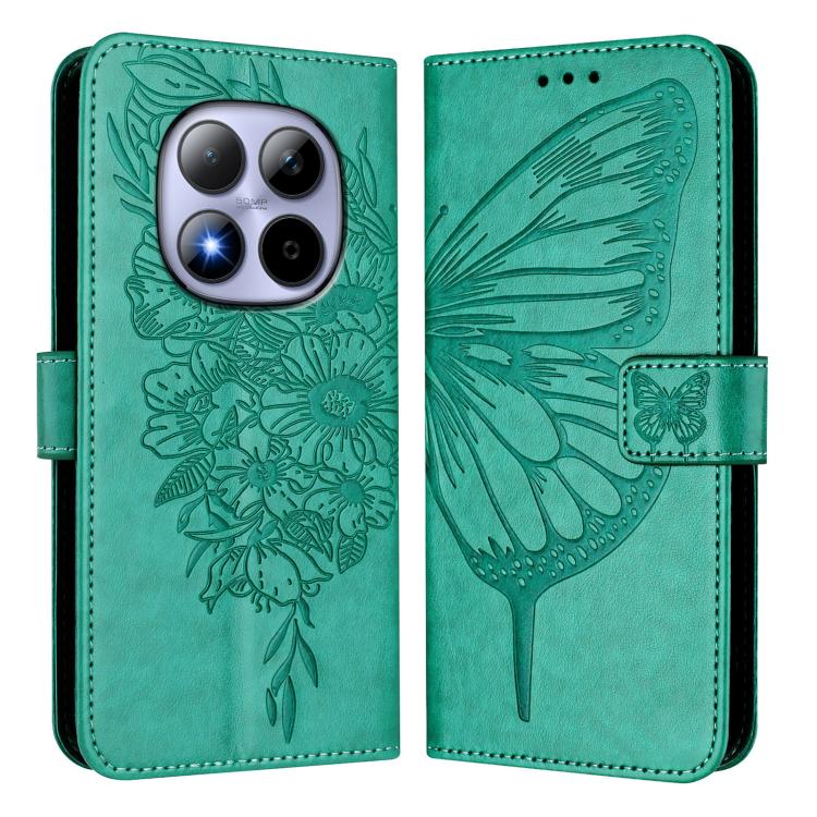 For Redmi Note 15 Pro 5G Global 163.6mm Embossed Butterfly Leather Phone Case(Green)