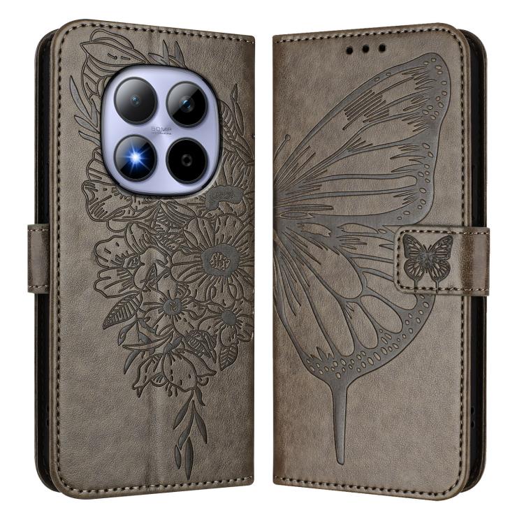 For Redmi Note 15 Pro 5G Global 163.6mm Embossed Butterfly Leather Phone Case(Grey)