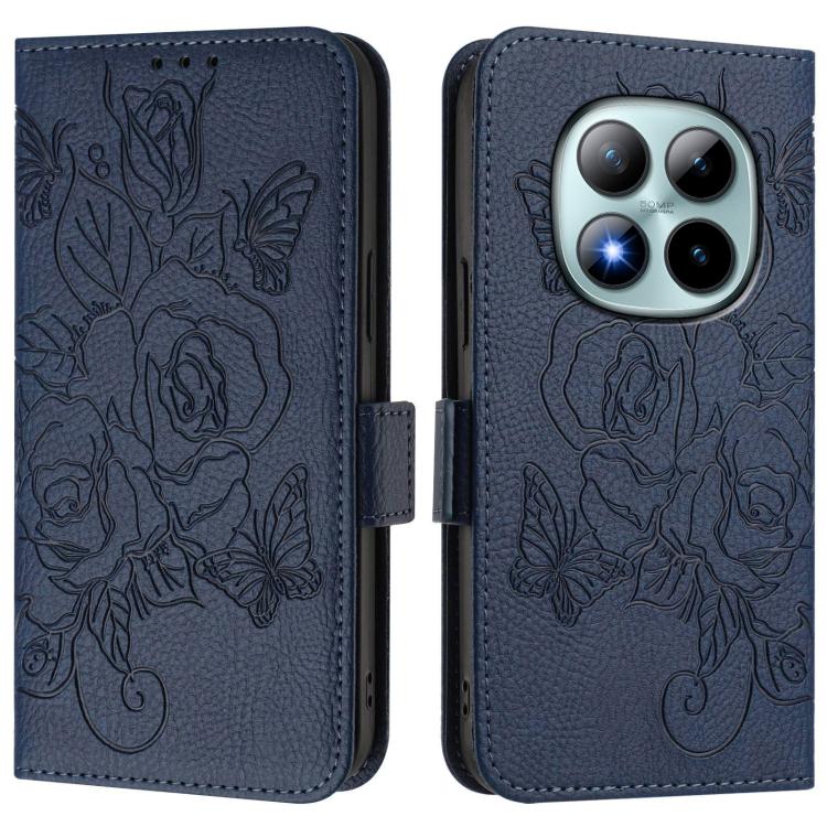 For Redmi Note 15 Pro+ 5G Global 163.6mm Embossed Rose RFID Anti-theft Leather Phone Case(Dark Blue)