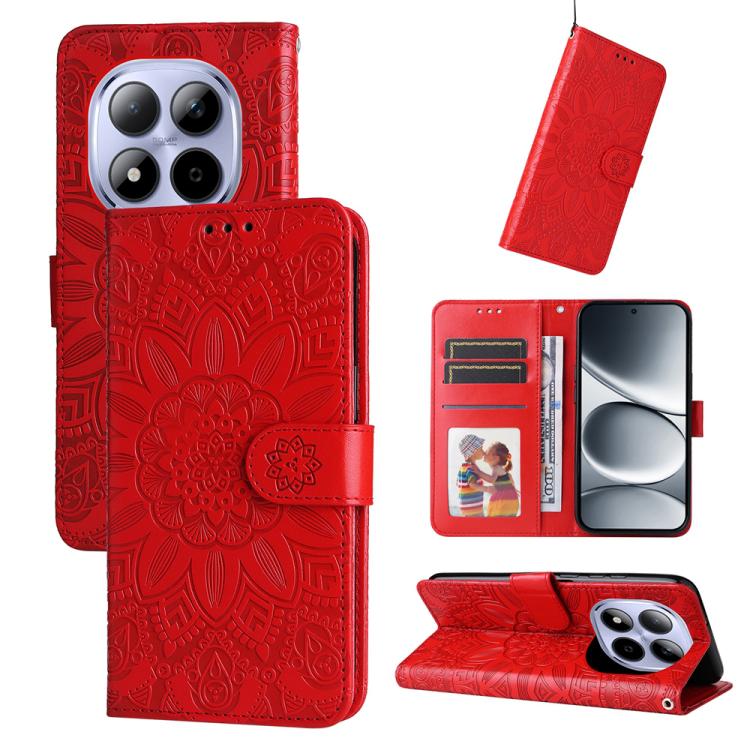 For Redmi Note 15 Pro 5G Global 163.6mm Embossed Sunflower Leather Phone Case(Red)