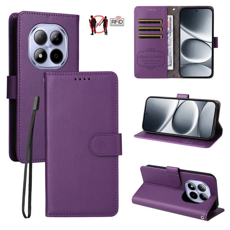 For Redmi Note 15 Pro 5G Global 163.6mm Litchi Texture RFID Blocking 3-Card Wallet Leather Phone Case(Purple)