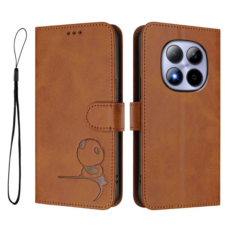For Redmi Note 15 Pro 5G Global 163.6mm Litter Panda Embossing RFID Leather Phone Case with Lanyard(Brown)