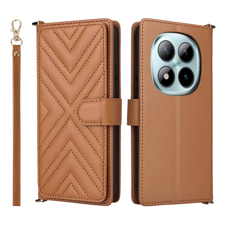 For Redmi Note 15 Pro 5G Global 163.6mm Multifunctional 6-Card Slots Leather Phone Case with Wrist Strap(Brown)