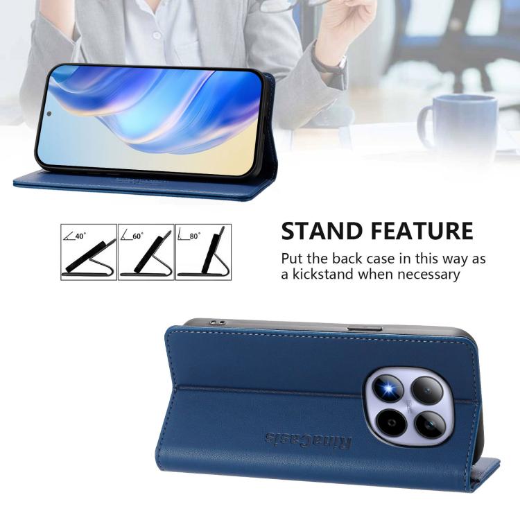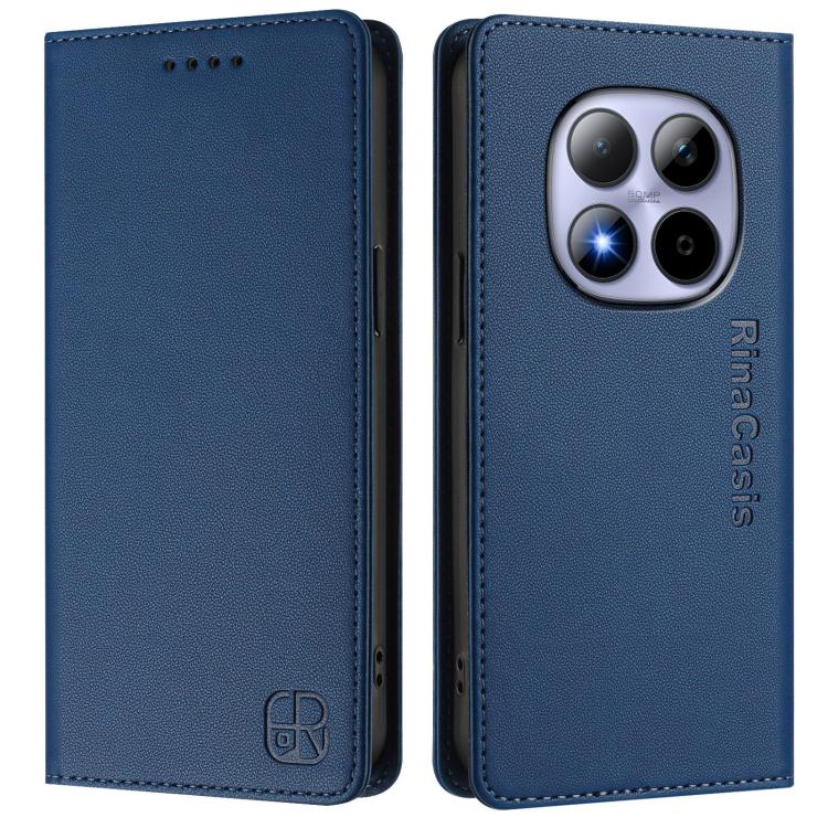 For Redmi Note 15 Pro 5G Global 163.6mm RC01 Dual-Folded Magnetic Suction RFID Leather Phone Case(Dark Blue)