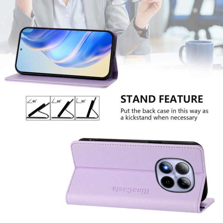 For Redmi Note 15 Pro 5G Global 163.6mm RC01 Dual-Folded Magnetic Suction RFID Leather Phone Case(Light Purple)