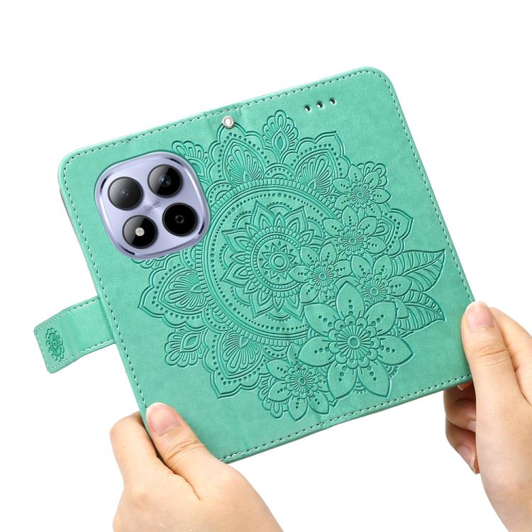 For Redmi Note 15 Pro 5G Global 163.6mm Seven-petal Flowers Embossing Leather Phone Case(Green)