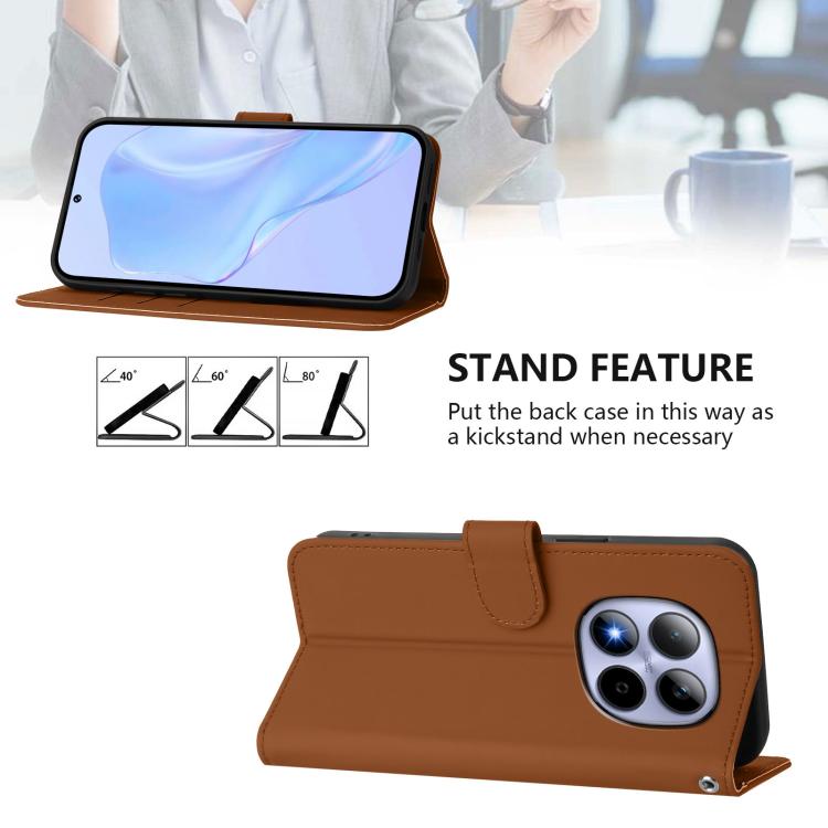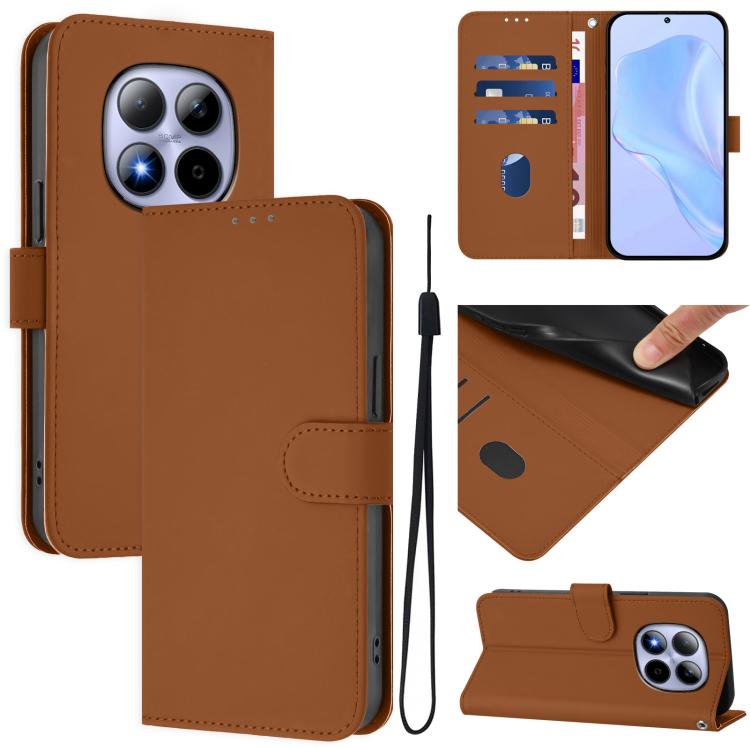 For Redmi Note 15 Pro 5G Global 163.6mm Skin Feel Solid Color Leather Phone Case with Lanyard(Brown)