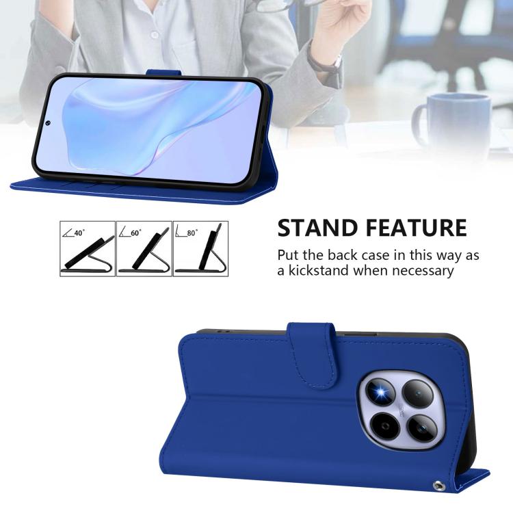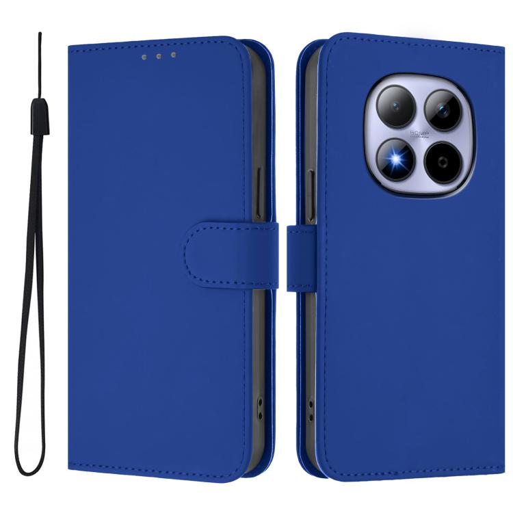 For Redmi Note 15 Pro 5G Global 163.6mm Skin Feel Solid Color Leather Phone Case with Lanyard(Dark Blue)