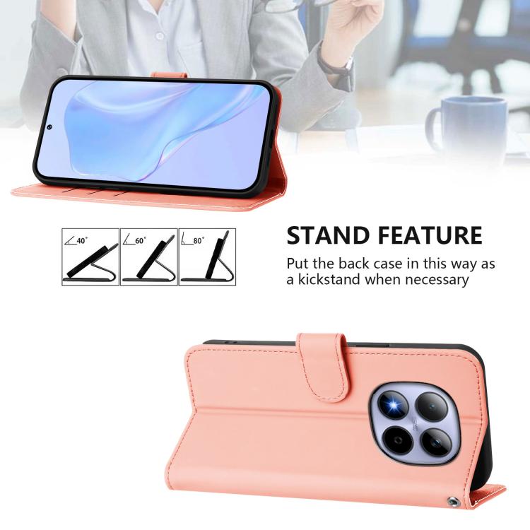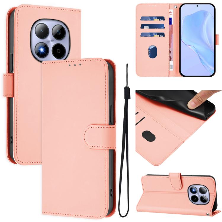 For Redmi Note 15 Pro 5G Global 163.6mm Skin Feel Solid Color Leather Phone Case with Lanyard(Pink)