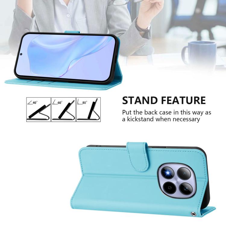For Redmi Note 15 Pro 5G Global 163.6mm Skin Feel Solid Color Leather Phone Case with Lanyard(Sky Blue)