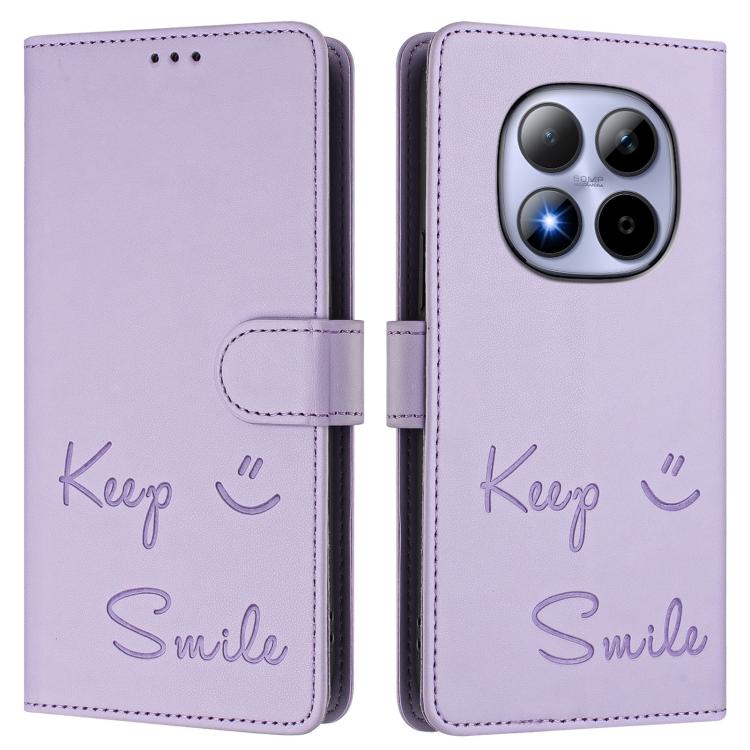 For Redmi Note 15 Pro 5G Global 163.6mm Smile Embossing RFID Leather Phone Case(Light Purple)