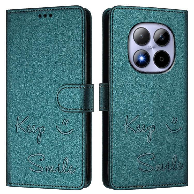 For Redmi Note 15 Pro 5G Global 163.6mm Smile Embossing RFID Leather Phone Case(Peacock Green)