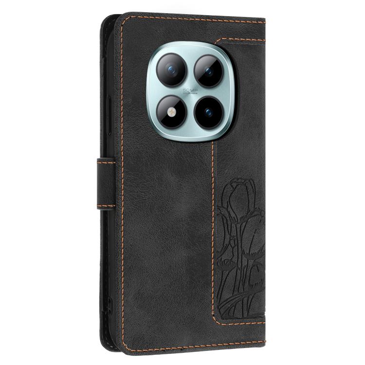 For Redmi Note 15 Pro+ 5G Global Tulips Embossed Leather Phone Case with Lanyard(Black)