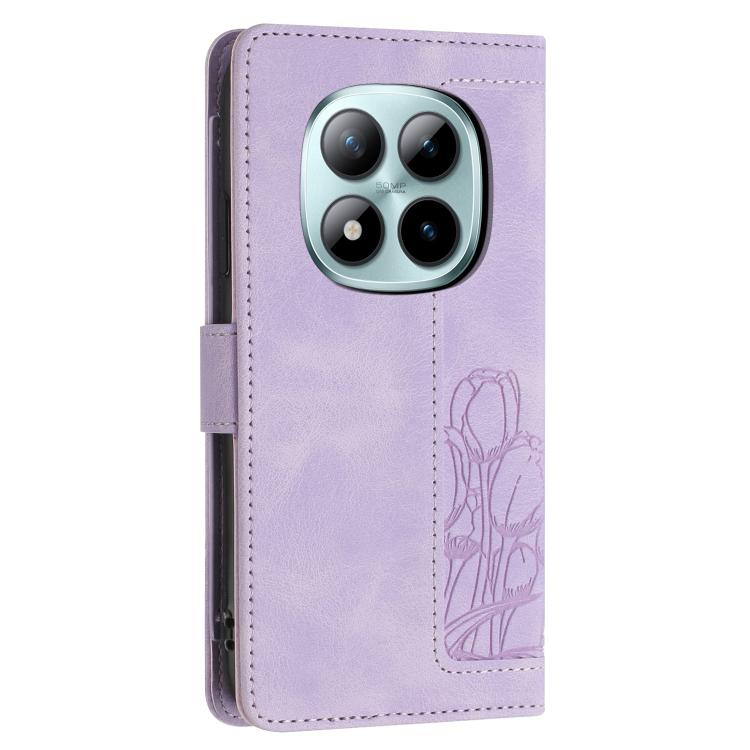 For Redmi Note 15 Pro+ 5G Global Tulips Embossed Leather Phone Case with Lanyard(Purple)