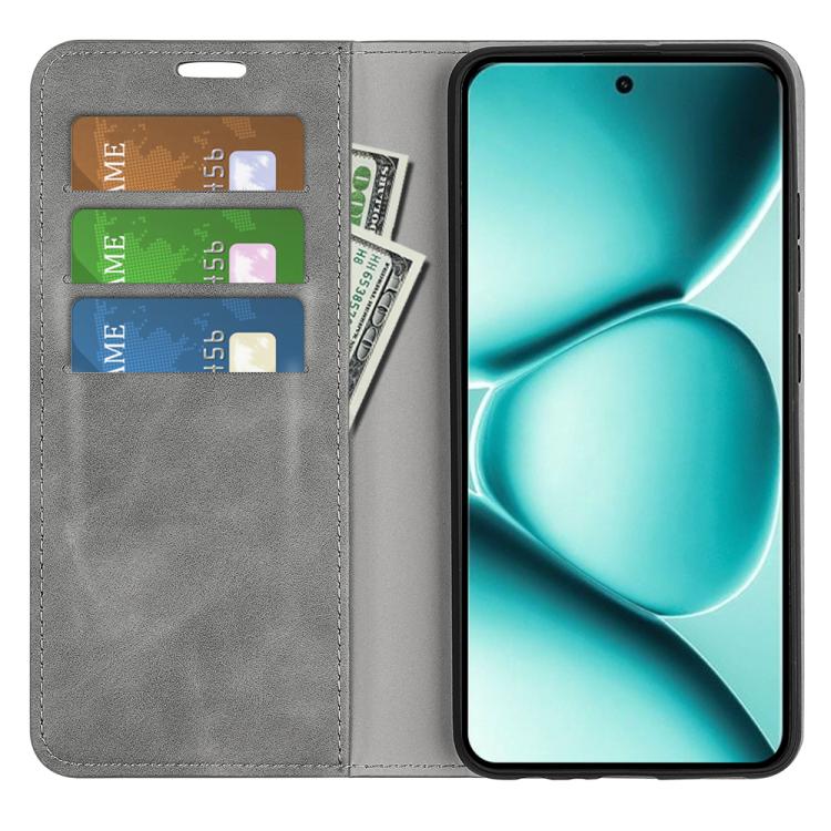 For Redmi Note 15 Pro Global 163.6mm Retro-skin Magnetic Suction Leather Phone Case(Grey)