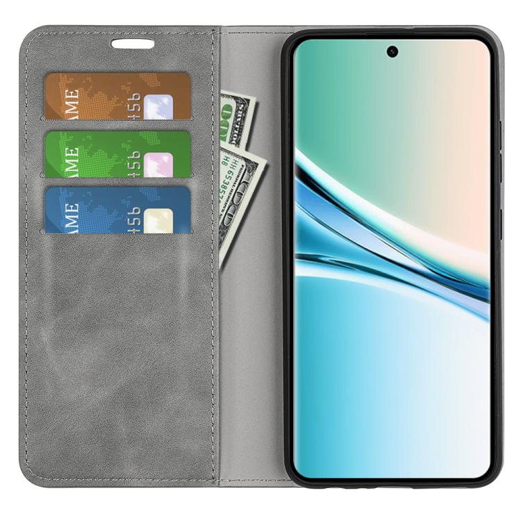 For Redmi Note Note 15 5G Global 164mm Retro-skin Magnetic Suction Leather Phone Case(Grey)