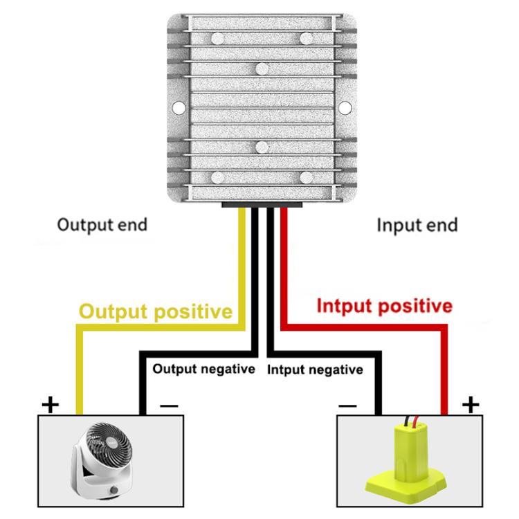 The step-down converter does not have reverse connection protection function. Please be sure to confirm the positive and negative poles of the adapter and the load before wiring to avoid reverse connection and burning the step-down converter and the load;