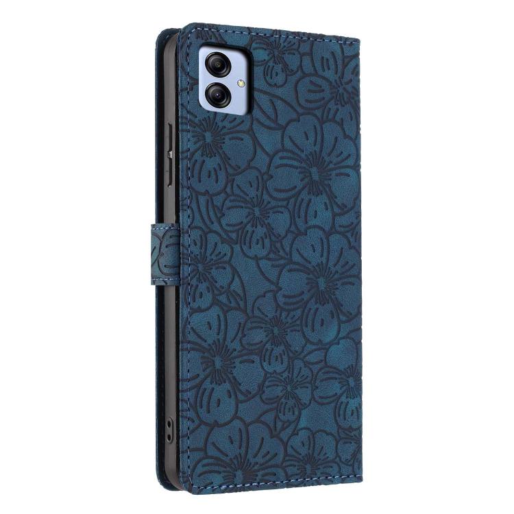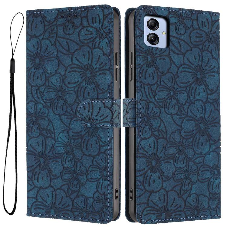 For Samsung Galaxy A04 Cherry Blossoms Embossed Leather Phone Case(Dark Blue)