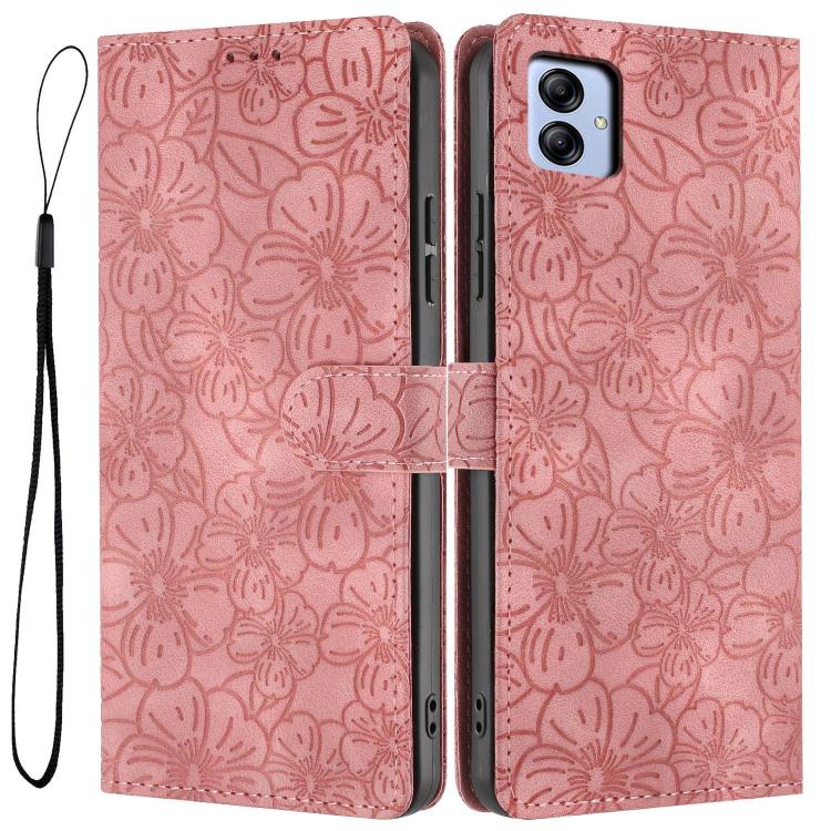 For Samsung Galaxy A04 Cherry Blossoms Embossed Leather Phone Case(Pink)