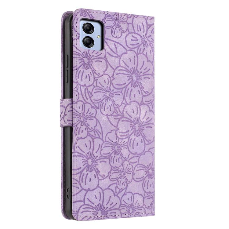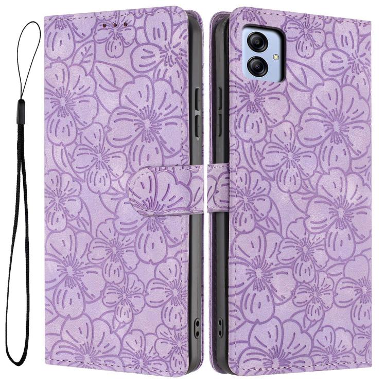 For Samsung Galaxy A04 Cherry Blossoms Embossed Leather Phone Case(Purple)
