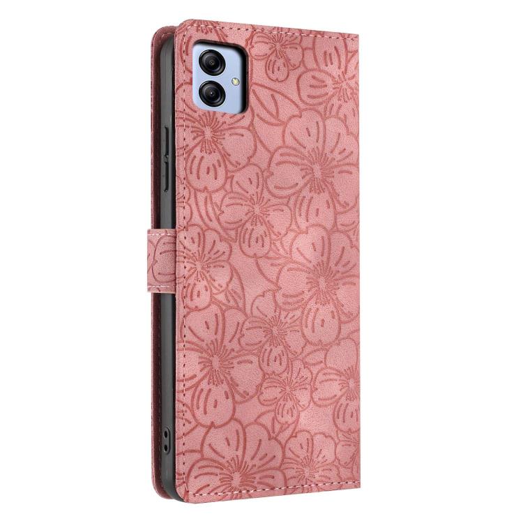 For Samsung Galaxy A04e Cherry Blossoms Embossed Leather Phone Case(Pink)