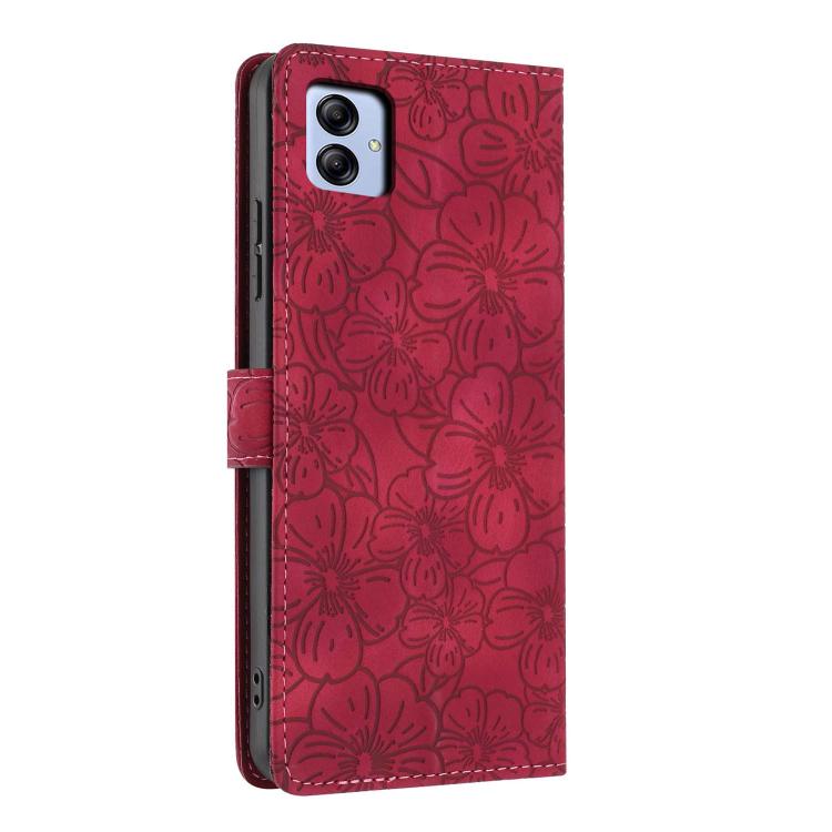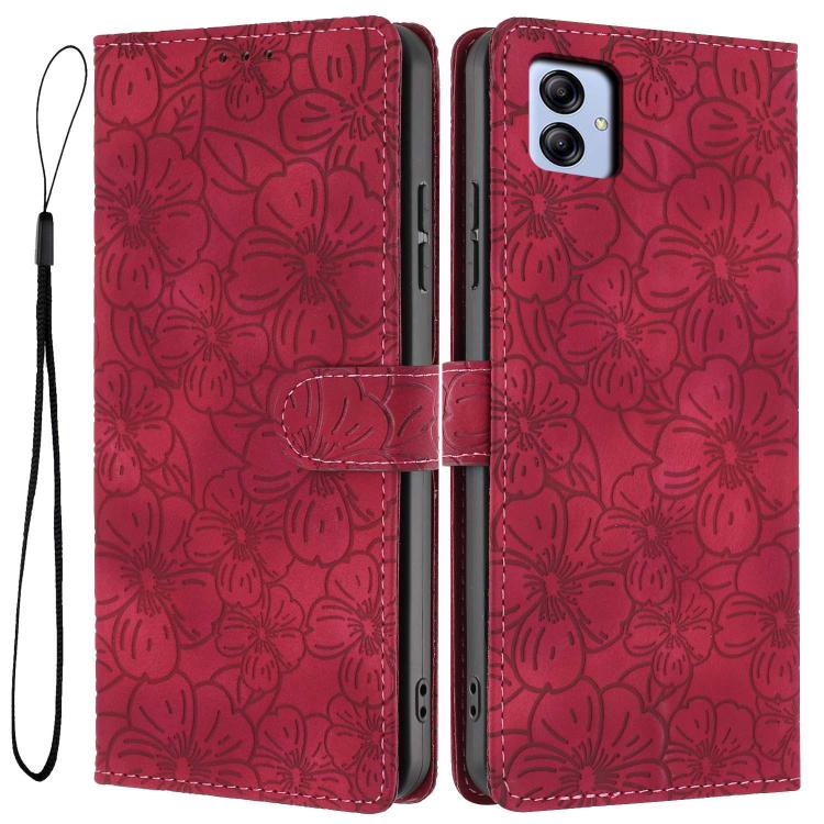 For Samsung Galaxy A04e Cherry Blossoms Embossed Leather Phone Case(Red)