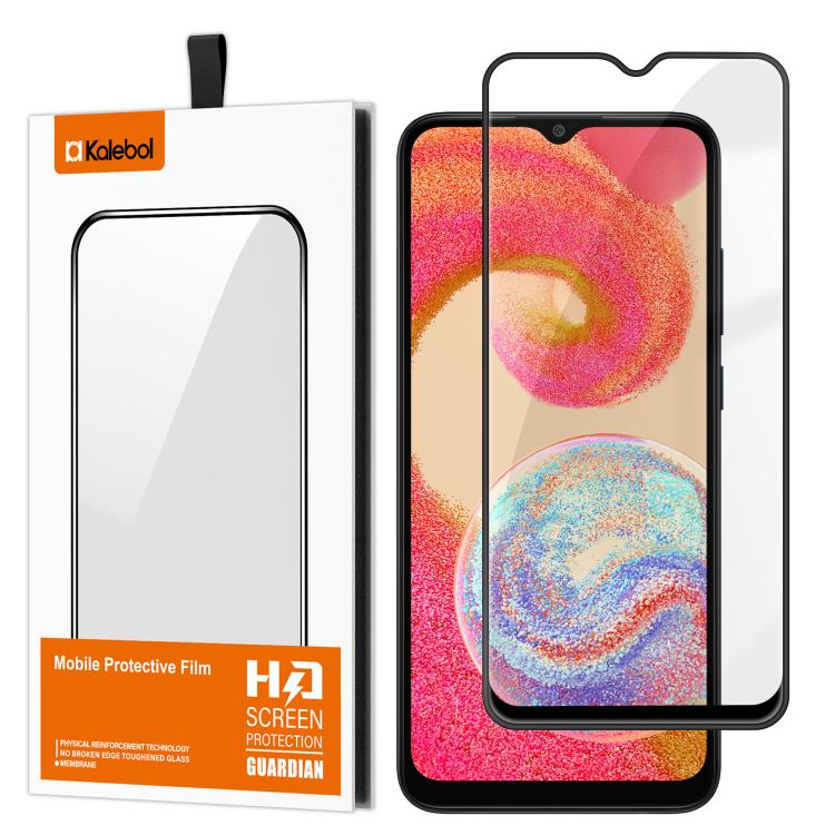 For Samsung Galaxy A04e Kalebol High-Aluminum Screen-Printed Full-Coverage Anti-Fingerprint Black-Bordered HD Tempered Glass Film
