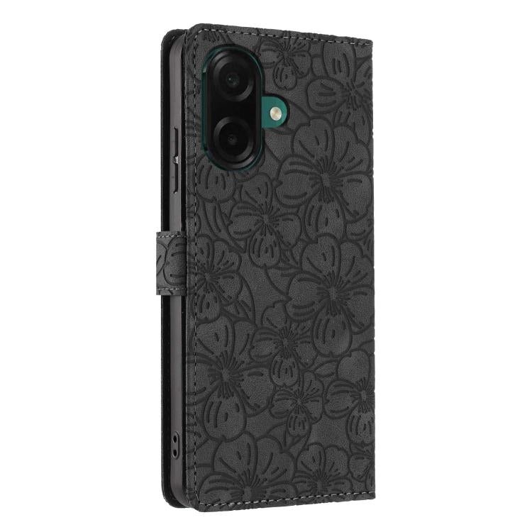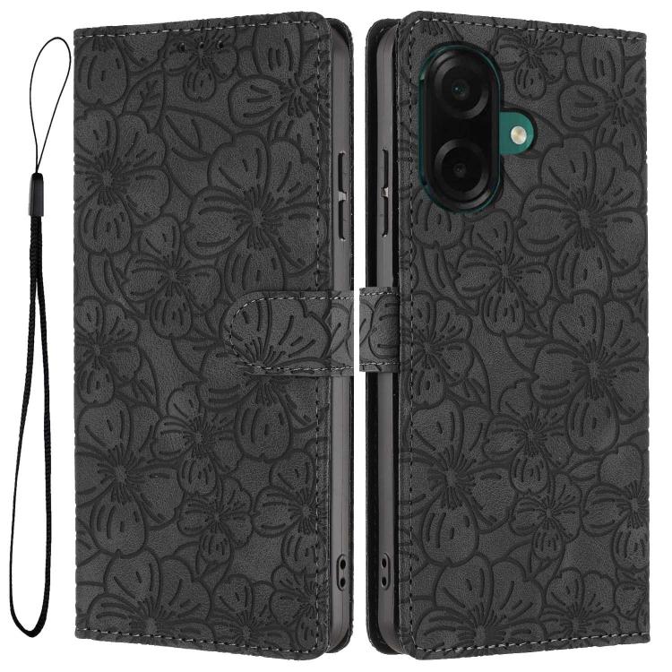 For Samsung Galaxy A05 Cherry Blossoms Embossed Leather Phone Case(Black)