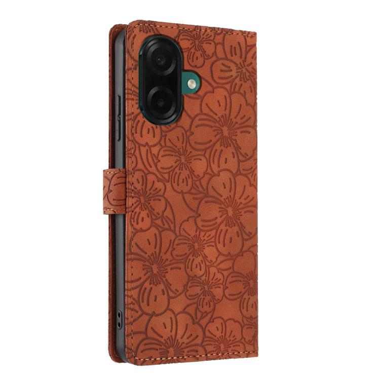 For Samsung Galaxy A05 Cherry Blossoms Embossed Leather Phone Case(Brown)