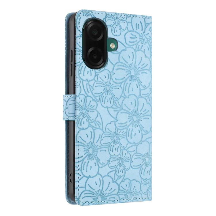 For Samsung Galaxy A05 Cherry Blossoms Embossed Leather Phone Case(Light Blue)
