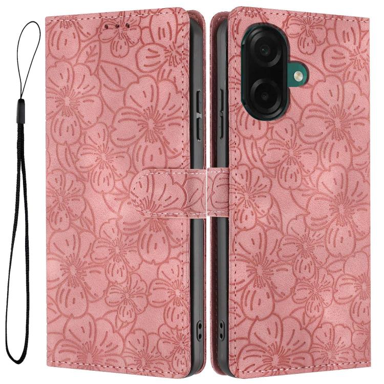 For Samsung Galaxy A05 Cherry Blossoms Embossed Leather Phone Case(Pink)