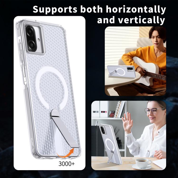 For Samsung Galaxy A07 4G Honeycomb Cooling MagSafe Holder Phone Case(Frosted Transparent)