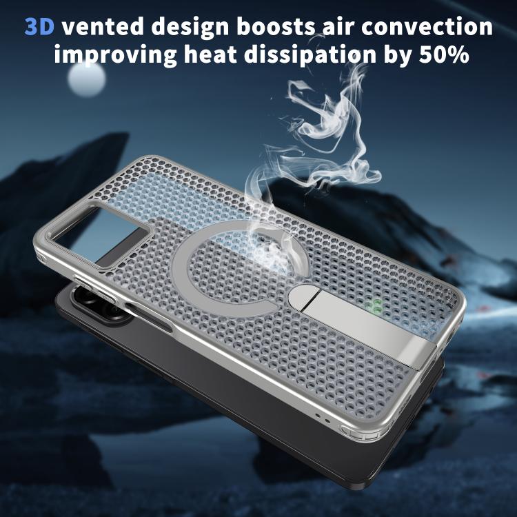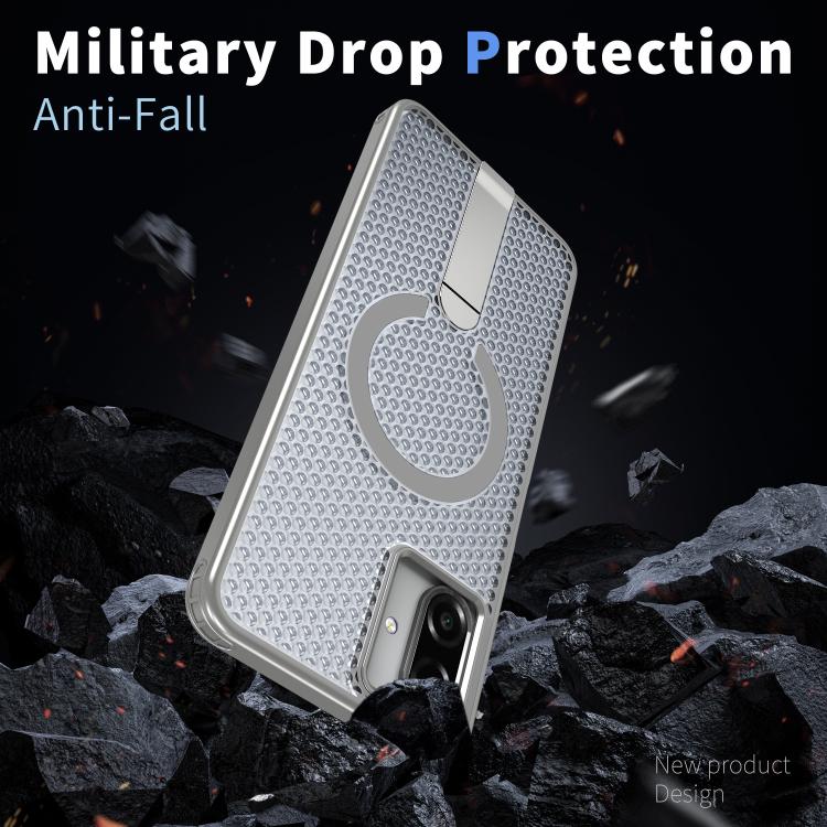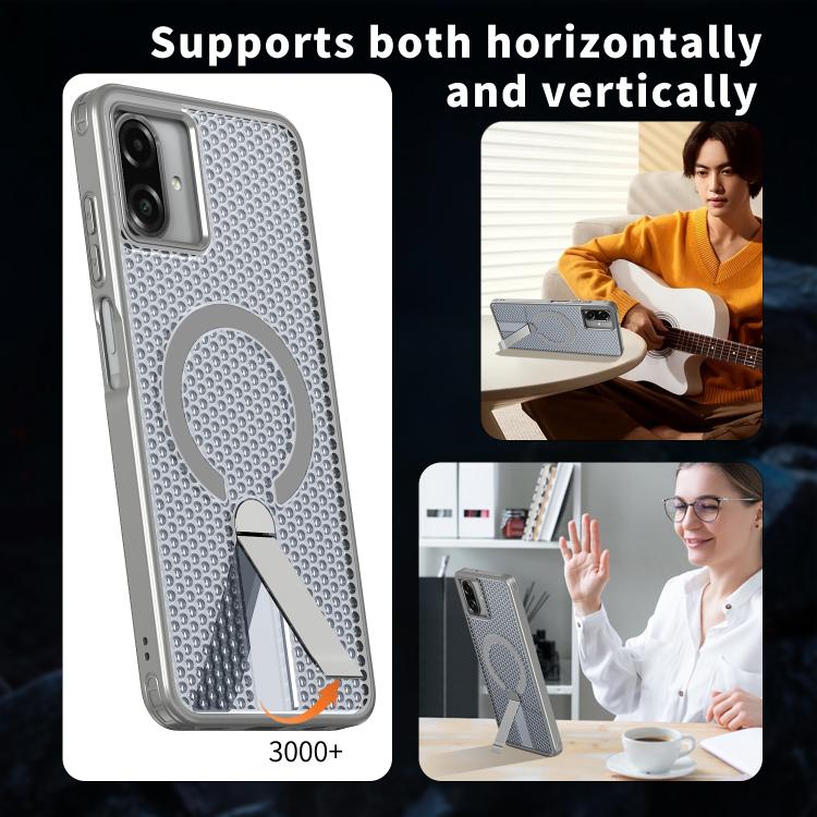 For Samsung Galaxy A07 4G Honeycomb Cooling MagSafe Holder Phone Case(Titanium Grey)