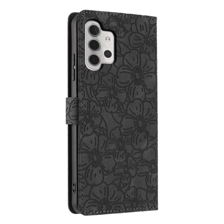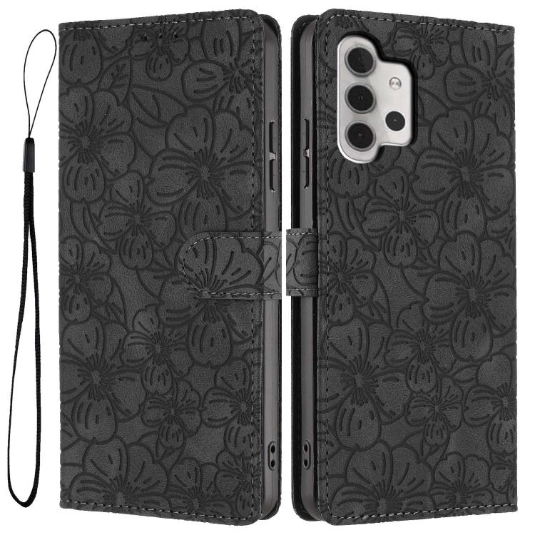 For Samsung Galaxy A13 4G Cherry Blossoms Embossed Leather Phone Case(Black)