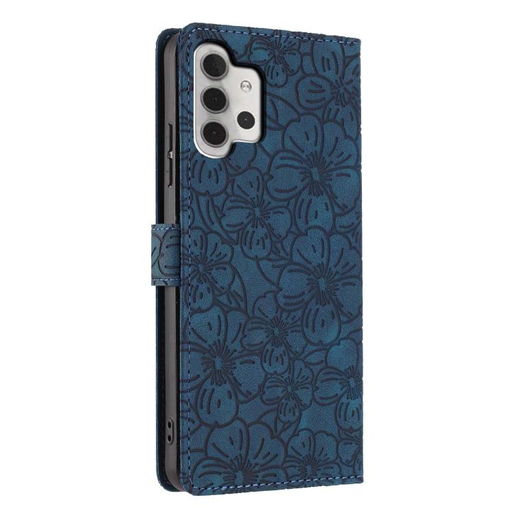 For Samsung Galaxy A13 4G Cherry Blossoms Embossed Leather Phone Case(Dark Blue)