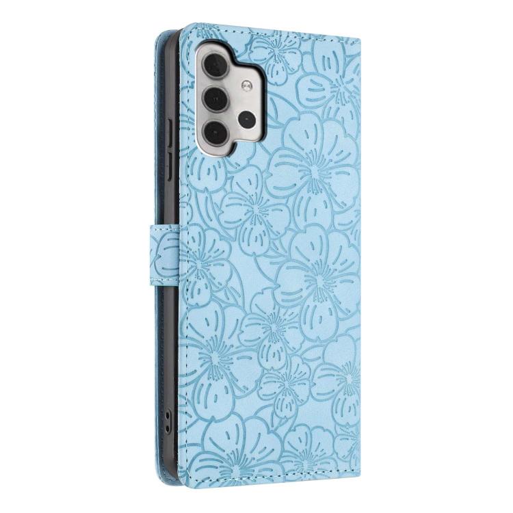 For Samsung Galaxy A13 4G Cherry Blossoms Embossed Leather Phone Case(Light Blue)
