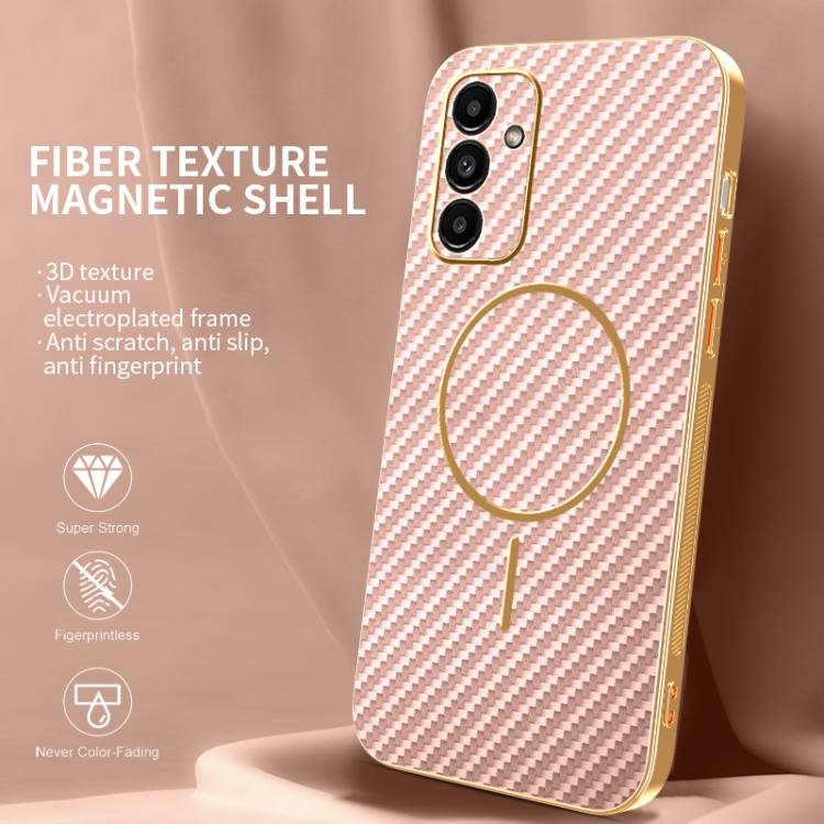 For Samsung Galaxy A13 5G Carbon Fiber Electroplated Thin Ring MagSafe Phone Case(Pink)