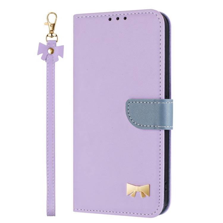 For Samsung Galaxy A14 4G / 5G Metal Bow Leather Phone Case with Hand Strap(Purple)